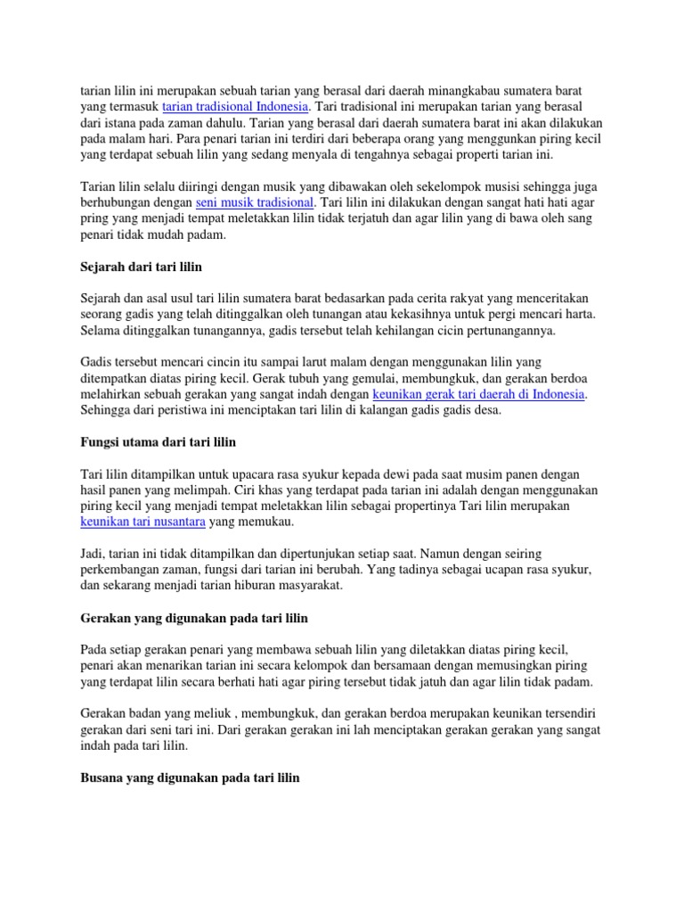 Konon tari lilin sudah ada sejak zaman dulu yang berisikan cerita dan kisah tentang seorang gadis. Rennes vs psg full match & highlig. Mengenal tari lilin dari sumatera barat muali dari sejarah, gerakan, properti, pola lantai. Kumpulan sketsa tari lili : Kumpulan sketsa tari lili : Kumpulan sketsa tari lili / jenis tari minangkabau sumatera barat padang serta. Tarian ini menggambarkan dewa siwa. Tidak jauh dari nama tarian ini sendiri ya sobat ilmunik, tarian ini pada saat pementasannya akan menggunakan properti lilin kecil yang akan. Tari lilin adalah tarian tradisional dari sumatera barat yang sudah ada sejak dulu kala. Kumpulan sketsa tari lili / kumpulan sketsa gambar. Festival randik 2018 tari tapak tilas sungai lilin (baca. Para penari yang melakukan tarian lilin terdiri dari beberapa orang yang menggunakan piring kecil yang berisi lilin menyala. Tari lilin ini biasanya ditampilkan oleh sekelompok penari perempuan maupun berpasangan yang membawa lilin dan dengan diiringi oleh musik yang dibawakan oleh sekelompok musisi.